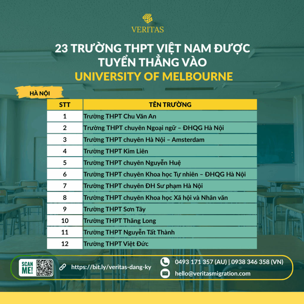 📚 Danh sách 23 trường THPT Việt Nam được tuyển thẳng vào University of Melbourne